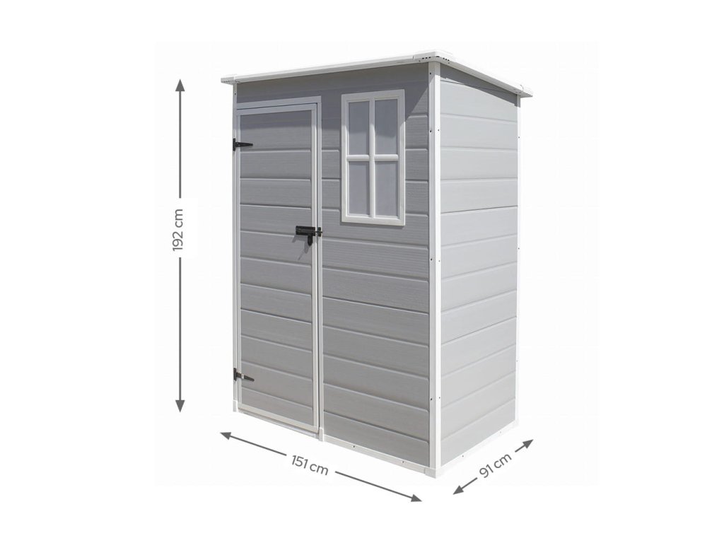 Záhradný domček je navrhnutý s dôrazom na pohodlie pri každodennom používaní. Jednokrídlové dvere umožňujú jednoduchý a rýchly prístup k uloženému náradiu, zatiaľ čo integrované okno zabezpečuje prirodzené denné svetlo v interiéri.