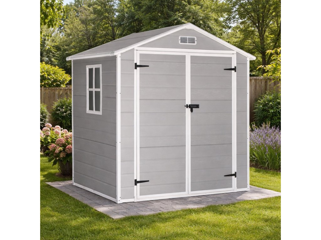 Plastový záhradný domček je veľký, praktický a bezúdržbový domček na uskladnenie záhradného náradia, príslušenstva a sezónnych doplnkov. Vďaka premysleným rozmerom 182 × 141 × 210 cm poskytuje dostatočný priestor pre všetko potrebné vybavenie a zároveň umožňuje optimálne využitie záhradného pozemku.